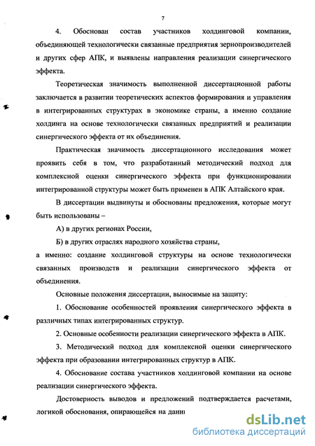 по формированию и функционированию холдинговых компаний в АПК Алтайского края на основе реализации синергического эффекта 92