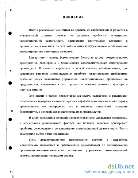 Выход российской экономики из кризиса, ее стабилизация и развитие в значительной степени зависят от решения проблемы активизации инвестиционной деятельности, расширения капитальных вложений в производство, в том числе за счет мобилизации и эффективного использования инвестиционного потенциала регионов.