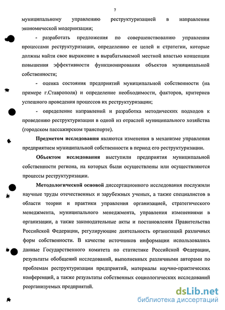 Методологической основой диссертационного исследования послужили научные труды отечественных и зарубежных ученых, а также специалистов в области теории и практики управления организацией, стратегического менеджмента, муниципального менеджмента, управления изменениями в организации, а также законодательные акты и постановления Правительства Российской Федерации, регулирующие деятельность организаций различных форм собственности. В качестве источников информации использовались данные Государственного комитета по статистике Российской Федерации, результаты обобщений исследований, выполненных различными авторами по проблемам реструктуризации предприятий, материалы научно-практических конференций, а также результаты собственных социологических исследований реорганизуемых предприятий.
