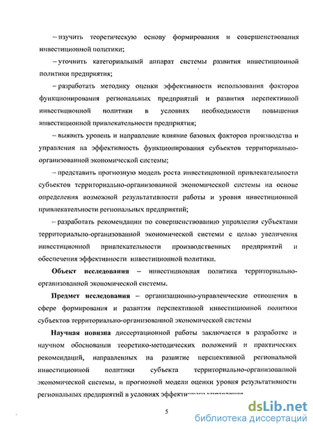 Научная новизна диссертационной работы заключается в разработке и научном обосновании теоретико-методических положений и практических рекомендаций, направленных на развитие перспективной региональной инвестиционной политики субъекта территориально-организованной экономической системы, и прогнозной модели оценки уровня результативности региональных предприятий в условиях эффективного управления.