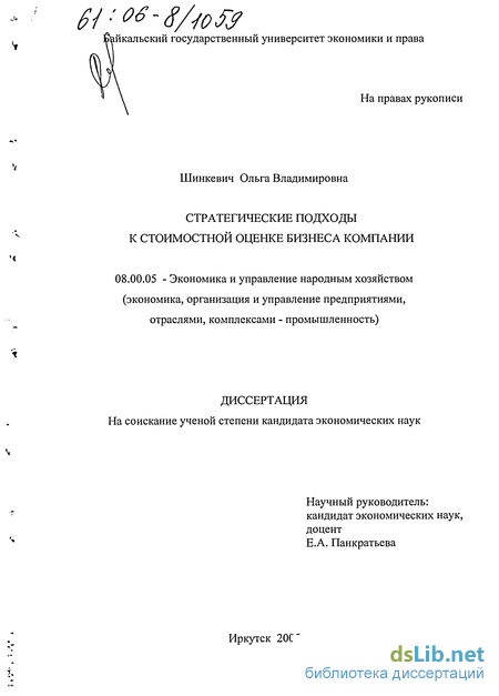Тем не менее, нет однозначного подхода к определению объекта в экономической науке. Так, Велижанин И.А. в своем диссертационном исследовании «Развитие статистических методов оценки инвестиционной привлекательности региона» говорит, что объектом является инвестиционная привлекательность [142]. Следовательно, объектом, помимо процесса или явления, может являться характеристика региона и вообще чего-либо. Если следовать этому подходу, то объектом настоящего исследования может быть стоимость бизнеса как характеристика стратегического управления предприятием. Предметом исследования, по мнению Велижанина И.А., является количетвенно-качественная характеристика условий и факторов инвестиционной привлекательности, ее формирования и развития, внешних и внутренних связей [142]. Для настоящего исследования, если исходить из подобной точки зрения, предметом может быть признаны методика определения стоимости бизнеса для целей управления, внешние и внутренние факторы ее формирования.