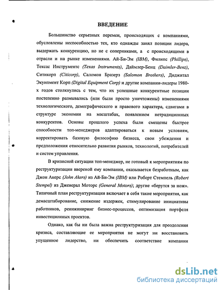 Большинство серьезных перемен, происходящих с компаниями, обусловлены неспособностью тех, кто однажды занял позиции лидера, выдержать конкуренцию, но не с соперниками, а с происходящими в отрасли и на рынке изменениями. Ай-Би-Эм (IBM), Филипс (Phillips), Тексас Инструменте (Texas Instruments), Даймлер-Бенц (Daimler-Benz), Ситикорп (Citicorp), Саломон Бразерз (Salomon Brothers), Диджитал Экуипмент Корп (Digital Equipment Corp) и другие компании-лидеры 1980-х годов столкнулись с тем, что их успешные конкурентные позиции постепенно размывались (или были просто уничтожены) изменениями технологического, демографического и правового характера, сдвигами в структуре экономии на масштабах, появлением нетрадиционных конкурентов. Основы прошлого успеха были смещены быстрее способности топ-менеджеров адаптироваться к новым условиям, корректировать базовую философию бизнеса, свои убеждения и предположения относительно развития рынков, технологий, потребителей и систем управления.