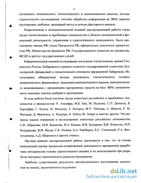 Научная новизна диссертационной работы заключается в том, что на основе комплексной оценки финансово-хозяйственной деятельности предприятия разработаны методические основы стратегического анализа и их использования при разработке программ стратегического развития предприятия.