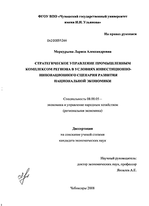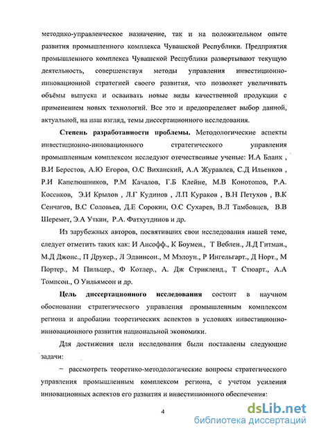 В последнее десятилетие к развитию российского хозяйства дает толчок значительный объем практической информации для анализа и осмысления отечественного опыта стратегического управления промышленным комплексом Это позволяет научно обосновать методы стратегического управления, предполагающие разработку инвестиционных и инновационных стратегий развития Большинство положений данной работы, рекомендации и выводы базируются как на теоретических обобщениях автора, имеющих методико-управленческое назначение, так и на положительном опыте развития промышленного комплекса Чувашской Республики Предприятия промышленного комплекса Чувашской Республики развертывают текущую деятельность,