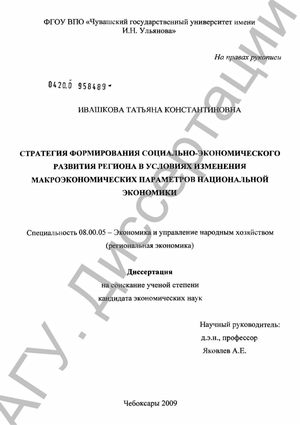 Предмет исследовании - экономические отношения, возникающие в ходе реализации стратегии социально-экономического развития Чувашской республики, в условиях изменения макроэкономических параметров национальной экономики.