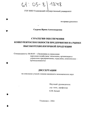 определить рациональные методы и средства формирования наиболее эффективного варианта стратегии обеспечения конкурентоспособности предприятий сектора hi-tech.