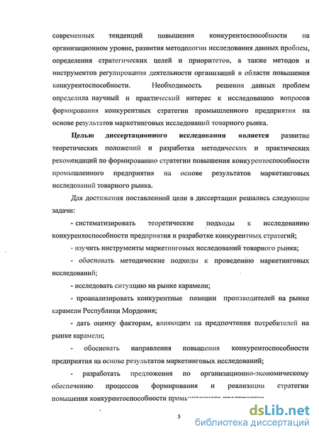 Целью диссертационного исследования является развитие теоретических положений и разработка методических и практических рекомендаций по формированию стратегии повышения конкурентоспособности промышленного предприятия на основе результатов маркетинговых исследований товарного рынка.