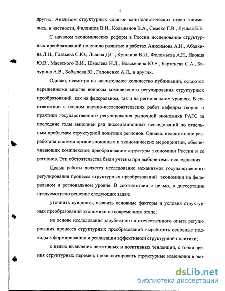 других. Анализом структурных сдвигов капиталистических стран занимались, в частности, Филлипов В.И., Колыванов В.А., Семеко Г.В., Луцкая Е.Е. С началом экономических реформ в России исследование структурных преобразований получило развитие в работах Анисимова А.Н., Абалкина Л.И., Глазьева С.Ю., Львова Д.С, Кушлина В.И., Фоломьева А.Н., Яковца Ю.В., Маевского В.И., Шмелева Н.Д., Власьевича Ю.Е., Бартенева С.А., Ба-чурина А.В., Бобылева Ю., Гапоненко А.Л., и других.