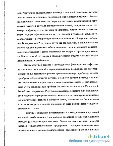 Жизнь вплотную подвела к необходимости формирования эффективных рыночных отношений в агропромышленном комплексе. Без их совершенствования невозможно решить продовольственную проблему, которая приобрела сейчас большую остроту. Во многих случаях переход к рыночным отношениям в агропромышленном комплексе связан с необходимостью учета национальных проблем. Их немало накопилось в Кыргызской Республике. Кыргызская Республика нуждается в перестройке экономической структуры агропромышленного комплекса, пересмотре сложившегося монокультурного подхода в аграрной сфере, изживании необоснованного отделения выпуска конечной продукции от мест производства сельскохозяйственного сырья.