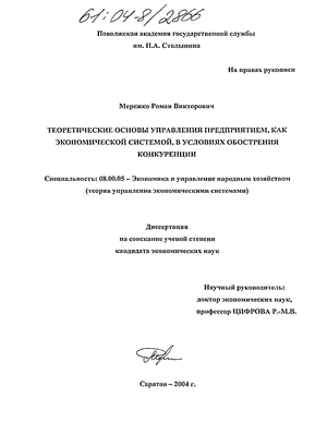 Отсутствие в настоящее время теоретических концепций, рассматривающих все аспекты конкурентоспособности предприятия и управления ею в процессе функционирования предприятия как экономической системы в условиях обострения конкуренции, а также актуальность этой проблемы в современных условиях определили тему диссертационного исследования и предопределили его цели и задачи.