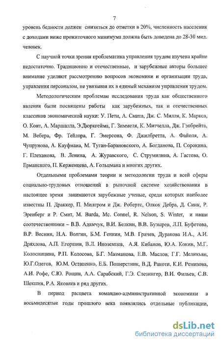 Отдельными проблемами теории и методологии труда и всей сферы социально-трудовых отношений в рыночной системе хозяйствования в настоящее время занимаются зарубежные ученые, среди которьж наиболее известны П. Драккер, П. Милгром и Дж. Роберте, Олкок Дебра, Д. Синк, Р. Эренберг и Р. Смит, М. Burda, Мс. Connel, R. Nelson, S. Winter, и наши соотечественники - В.В. Адамчук, В.И. Белкин, В.В. Бузырев, Л.П. Буфетова, В.Р. Веснин, Н.А. Волгин, Б.М. Генкин, М.В. Грачев, Дуракова И.А., А.И. Дряхлова, А.П. Егоршин, В.Л. Иноземцев, А.Я. Кибанов, Ю.А. Кокин, М.Г. Колосницина, Р.П. Колосова, Б.Г. Мазманова, Е.В. Маслов, Г.Г. Меликьян, Ю.Г.Одегов, Ю.М. Остапенко, Е.Б. Пошерстник, В.Д. Ракоти, К.И. Ремизова, А.И. Рофе, СЮ. Рощин, А.А. Сарабский, Г.Э. Слезингер, В.И. Фильев, СВ. Шекшня, Р.А. Яковлев и ряд других.
