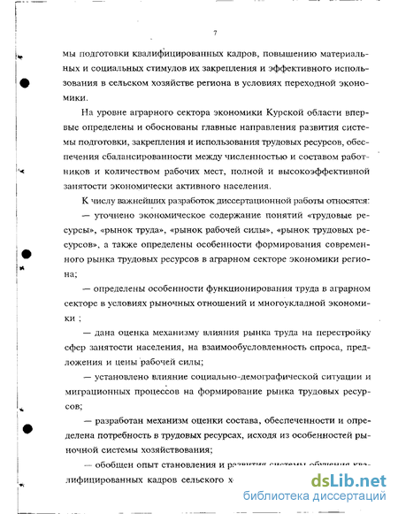 мы подготовки квалифицированных кадров, повышению материальных и социальных стимулов их закрепления и эффективного использования в сельском хозяйстве региона в условиях переходной экономики.