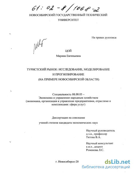 Апробация исследования. Результаты диссертационной работы докладывались и обсуждались: на научно-практическом семинаре «Туризм, культура и здоровье» (Новосибирск, 1997 г.), международной научно-практической конференции «О формировании единого туристского пространства государств-участников СНГ» (Москва, 1999 г.), конференции молодых ученых (Новосибирск, 1999 г.), международной научно-методической конференции «Методология преподавания статистики, эконометрики и экономико-математических дисциплин в экономических вузах» (Москва, 1999 г.), III российско-корейском международном симпозиуме науки и техники (Новосибирск, 1999 г.), III международном студенческом конгрессе стран Азиатско-Тихоокеанского региона «Молодые ученые и научно-технический прогресс» (Владивосток, 1999 г.), научно-практической конференции «Новосибирск на рубеже XXI века: инвестиционные возможности и перспективы развития» (Новосибирск,