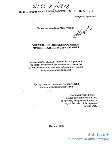 Некоторые вопросы, рассмотренные в данной работе, могут быть включены в лекционные курсы учебных программ системы подготовки и переподготовки специалистов и посвященных проблемным вопросам бюджетного менеджмента на муниципальном уровне.