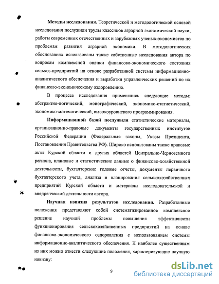 Методы исследования. Теоретической и методологической основой исследования послужили труды классиков аграрной экономической науки, работы современных отечественных и зарубежных ученых-экономистов по проблемам развития аграрной экономики. В методологических обоснованиях использованы также собственные исследования автора по вопросам комплексной оценки финансово-экономического состояния сельхоз-предприятий на основе разработанной системы информационно-аналитического обеспечения и выработки управленческих решений по их финансово-экономическому оздоровлению.