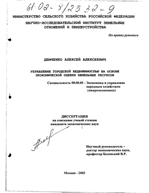 Среди современных исследователей проблемы управления городской недвижимостью необходимо отметить Л.П. Белых, П. Г. Грабового, Ю.Н. Кулакова, Б.М. Рабиновича, В.И. Ресина, О.М. Толкачева. Значительный вклад в развитие института оценки земельной собственности внесли В.В. Артеменко, В. Р. Беленький, A.A. Варламов, С.Н. Волков, В.В. Григорьев, П.Ф. Лойко, С.И. Носов, А.П. Огарков, В.В. Прорвич, А.Э. Сагайдак, A.B. Севостьянов, H.H. Слюсарева, A.B. Ткач, И.Л. Цуканов, Ю.А. Цыпкин и др.