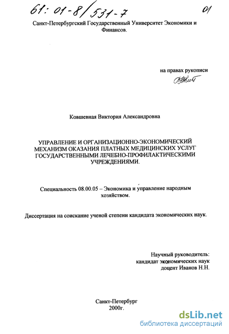 Переход к системе медицинского страхования мы будем рассматривать как очередной этап реформирования здравоохранения и как еще одно из условий, сделавших возможным внедрение системы оказания медицинских услуг на платной основе в государственных лечебных учреждениях.