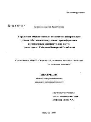 Информационно-эмпирическую базу диссертационного исследования составили нормативные документы Российской Федерации и Кабардино-Балкарской Республики, аналитические материалы органов по управлению государственным имуществом РФ и КБР, анализ опыта реформирования отношений собственности и организации управления имущественными