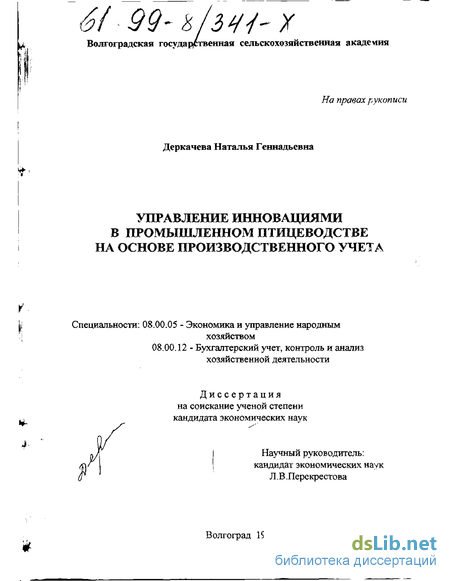 Цели и задачи диссертационного исследования: разработка методических положений и практических рекомендаций по организации в промышленном птицеводстве информационной подсистемы управления инновациями на основе производственного учета.