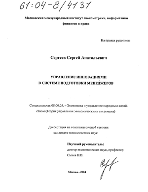 необходимостью осуществления фундаментального экономического образования и отсутствием научно обоснованной системы управления экономической подготовкой менеджеров. Эти противоречия обозначили проблему необходимости исследований основ эффективного управления подготовкой квалифицированных кадров, что и обусловило тему нашего диссертационного исследования.