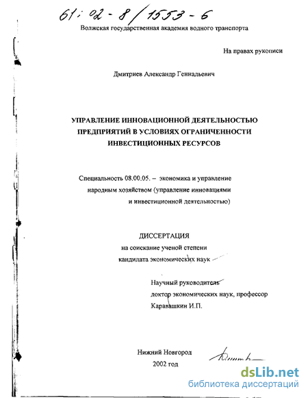 Методологической и информационной основой диссертационного исследования послужили научные труды зарубежных и отечественных авторов в области управления инновациями и инвестициями. Применительно к исследуемой теме широко использован системный подход к анализу теоретических и практических вопросов управления инновационной деятельностью в условиях ограниченности экономических ресурсов.