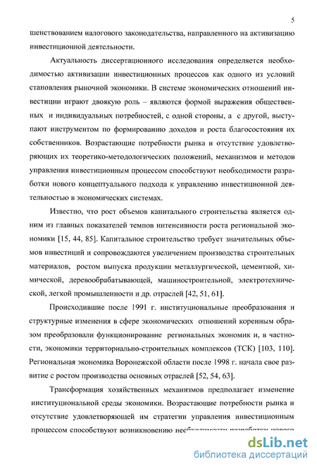 Актуальность диссертационного исследования определяется необходимостью научного обоснования и разработки методологии парадигмы управления инвестиционной деятельностью территориально-строительных комплексов с применением экономико-математических моделей для принятия научно обоснованных управленческих решений, оптимизации вариантов экономического развития предприятий ТСК, исследования деловой активности и эффективности действующих механизмов управления инвестиционной деятельности предприятий территориально-строительных комплексов в условиях жесткой конкуренции и борьбы за свое успешное существование. Степень изученности вопроса.