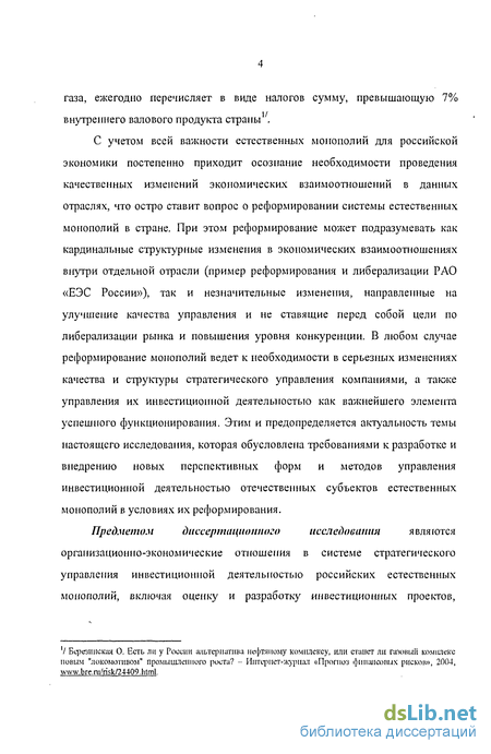 Объект настоящего исследования - российские естественные монополии, находящиеся в стадии своего реформирования и реструктуризации.