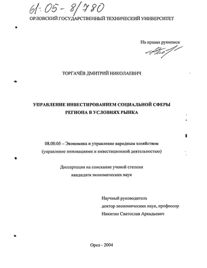 Цель диссертационного исследования заключается в разработке научных положений и. практических рекомендаций по управлению инвестированием социальной сферы региона в условиях современной действительности.
