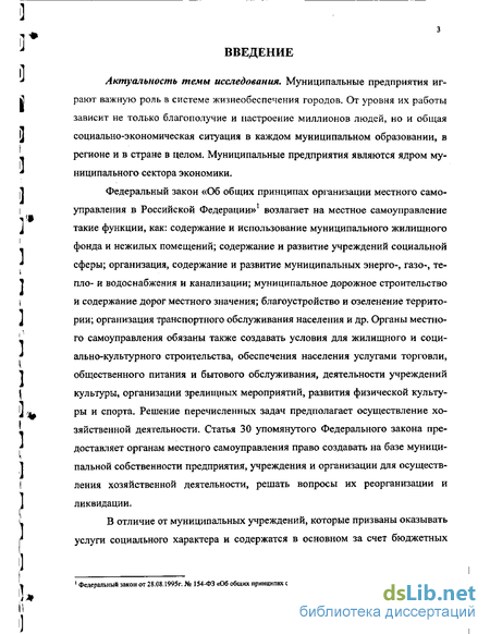 Актуальность темы исследования. Муниципальные предприятия играют важную роль в системе жизнеобеспечения городов. От уровня их работы зависит не только благополучие и настроение миллионов людей, но и общая социально-экономическая ситуация в каждом муниципальном образовании, в регионе и в стране в целом. Муниципальные предприятия являются ядром муниципального сектора экономики.
