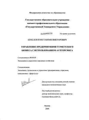 аутсорсера в управлении предприятиями туристского бизнеса 69