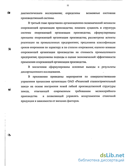 Опережающую организацию производства можно эффективно применять, если обеспечить условия быстрого реагирования и упреждения изменений во внешней и внутренней среде. Достичь этого позволяет диагностика промышленного предприятия, методы которой представлены в главе 2. v4> Выводы к главе 1