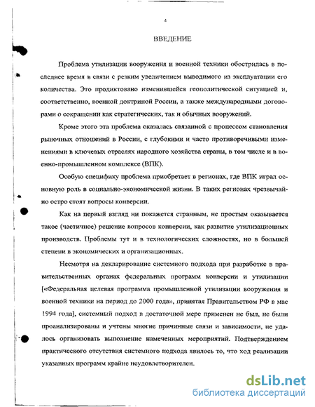 Несмотря на декларирование системного подхода при разработке в правительственных органах федеральных программ конверсии и утилизации [«Федеральная целевая программа промышленной утилизации вооружения и военной техники на период до 2000 года», принятая Правительством РФ в мае 1994 года], системный подход в достаточной мере применен не был, не были проанализированы и учтены многие причинные связи и зависимости, не удалось организовать выполнение намеченных мероприятий. Подтверждением практического отсутствия системного подхода явилось то, что ход реализации указанных программ крайне неудовлетворителен. ^