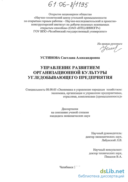 В первой главе «Состояние вопроса и обоснование задач исследования» на основе выявления роли организационной культуры в социально-экономическом развитии угледобывающих предприятий обоснован концептуальный подход к раскрытию понятия организационной культуры предприятия как системы социально-экономических отношений между собственниками труда и капитала; рассмотрены теоретическая и методическая база исследования.