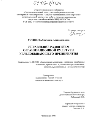 Актуальность темы исследования. Необходимость развития концепции организационной культуры российских угледобывающих предприятий обусловлена острой потребностью их владельцев в повышении конкурентоспособности бизнеса.
