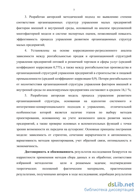 Теоретическая значимость диссертационного исследования состоит в совершенствовании теоретико-методических подходов к управлению развитием организационных структур предприятий малого бизнеса.