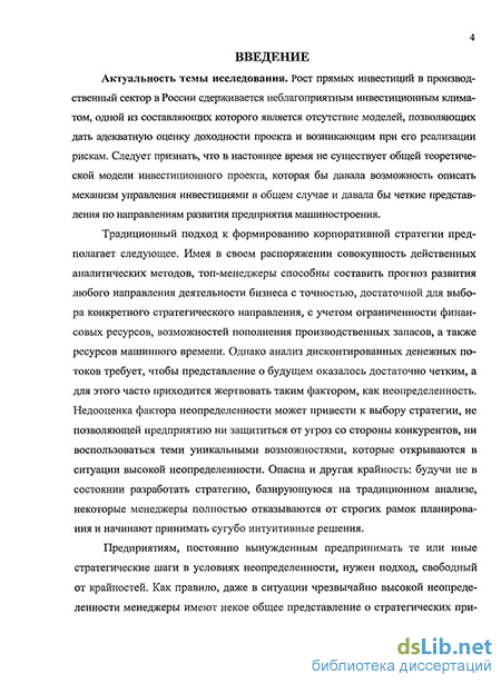 Вопросы теории инвестиционного проектирования и построение экономико-математических моделей и методов для оценки и управления инвестиционными рисками рассматривались в работах многих отечественных и зарубежных специалистов. Среди научных трудов по этой проблематике необходимо отметить работы Л.О. Бабешко, А.В. Воронцовского, Д.А. Ендовицкого, М.А. Лимитовско-го, Ю.П. Лукашина, А.В. Мельникова, ЯМ. Миркина, Д.М. Михайлова, Т.Н. Пер-возванской, А.А. Первозванского, М.М. Рогова, Е.М. Четыркина, Г. Александера, Ю. Бригхейма, Дж. Бэйли, Г. Дженкинса, Дж. Линтнера, О. Моргенштерна, С. Майерса, Дж. Маршалла, Ф. Найта, К. Паррамоу, Р. Смита, А. Фишера и др. Вклад всех этих ученых в создание и развитие количественной теории управления инвестициями, несомненно, огромен. Однако следует признать, что глобализация экономики ставит перед научными исследованиями в области управления развитием предприятий новые задачи, требующие оригинальных решений и быстрого применения на практике.