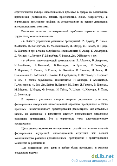 В подходах указанных авторов вопросы управления развитием, формирования внутренней инвестиционной стратегии предприятия, а также проблемы инвестиционного проектирования рассмотрены как отдельные задачи, не связанные в целостную систему комплексного управления развитием предприятия. Это и определило тему диссертационного исследования.