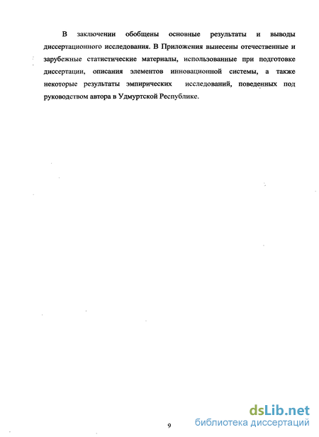 В заключении обобщены основные результаты и выводы диссертационного исследования. В Приложения вынесены отечественные и зарубежные статистические материалы, использованные при подготовке диссертации, описания элементов инновационной системы, а также некоторые результаты эмпирических исследований, поведенных под руководством автора в Удмуртской Республике.