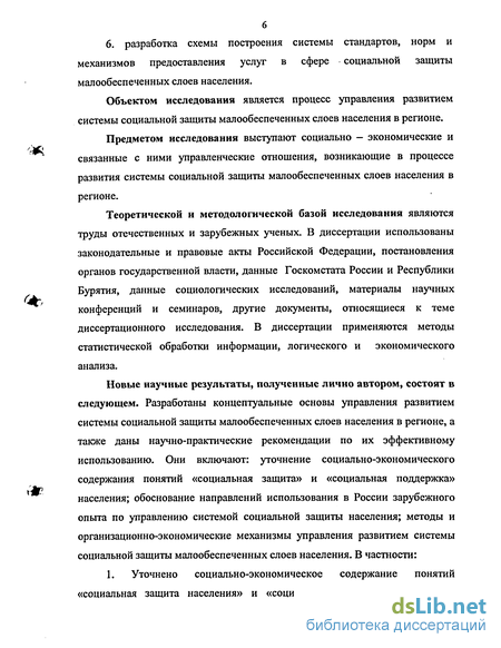 4. обоснование путей и методов совершенствования государственного управления развитием системы социальной защиты малообеспеченных слоев населения;
