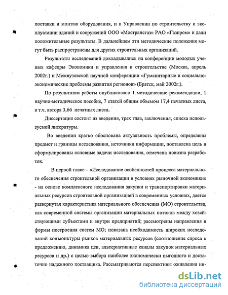 Тема диссертации продиктована актуальностью проблемы построения оптимальной системы материального обеспечения строительной фирмы. Имеется в виду, что система материального обеспечения - это, прежде всего, определенное прогрессивное мышление, методология, наиболее эффективная в масштабной производственно-хозяйственной организации.