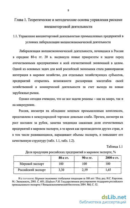 Цели и задачи исследования. Целью диссертационной работы является исследование теоретических и методических основ управления рисками и разработка инструментов и методов по минимизации рисков внешнеторговой деятельности.