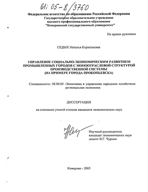 анализ системы управления развитием городов с моноотраслевой структурой (г. Прокопьевск);