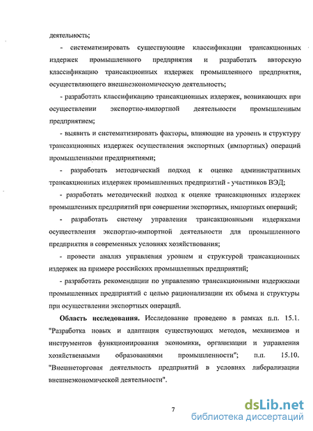 исследовать существующие в отечественной и зарубежной литературе теоретические основы формирования и управления трансакционными издержками промышленных предприятий, осуществляющих внешнеэкономическую деятельность;
