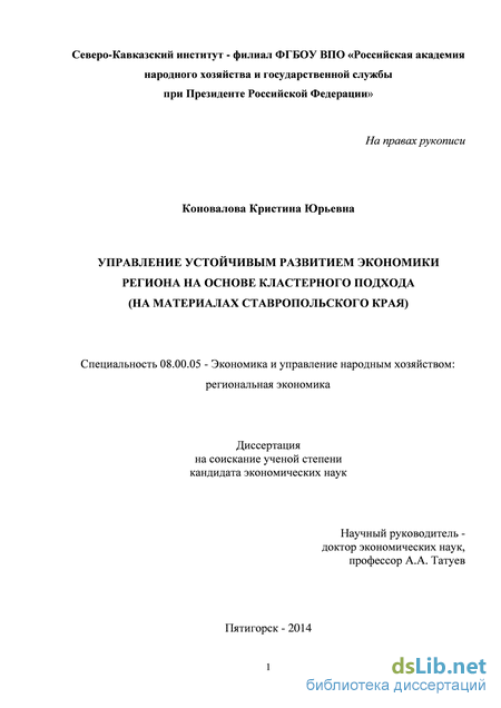 - Обоснование роли и значения кластеров как одной из форм взаимодействия субъектов хозяйственно-экономической деятельности в процессе реализации их конкурентных преимуществ