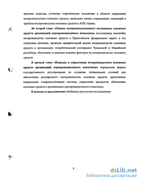 обосновано и доказано влияние факторов на воспроизводство основных средств в организациях агропромышленного комплекса, построена модель прогноза экономических параметров воспроизводства основных средств;