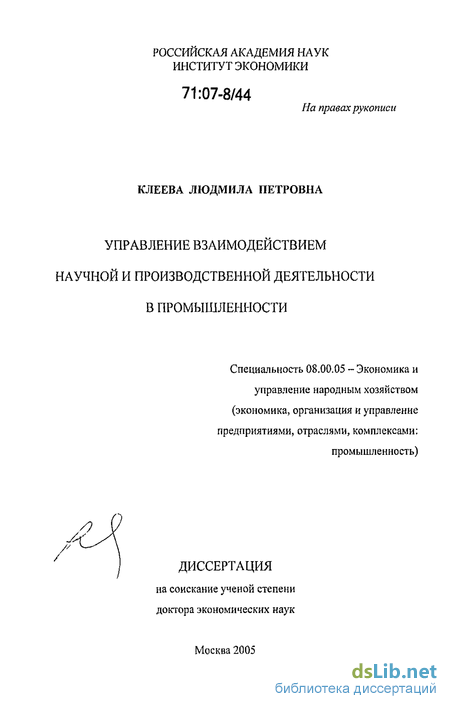 Предметом исследования является методология создания организационно-экономических механизмов и выработки способов управления взаимодействием науки и промышленного производства.