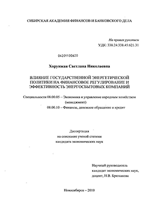 Предметом исследования являются управленческие отношения, возникающие в процессе реализации государственной энергетической политики и оказывающие влияние на финансовое регулирование и эффективность деятельности энергосбытовых компаний.