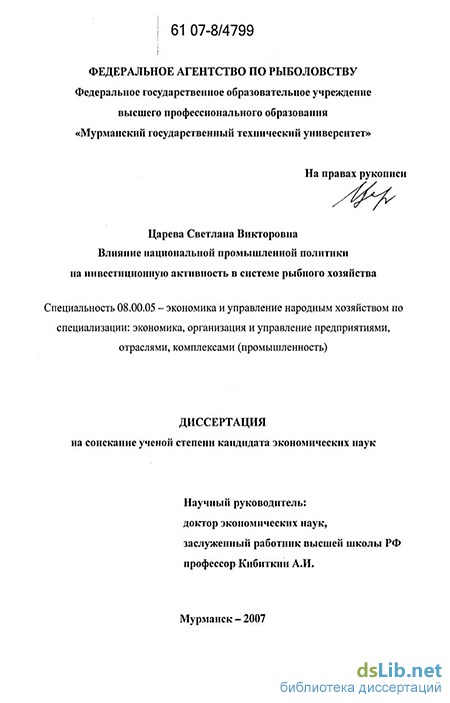 циональнои промышленной политики на инвестиционные процессы предприятий рыбного хозяйства, направленные на их динамичное развитие