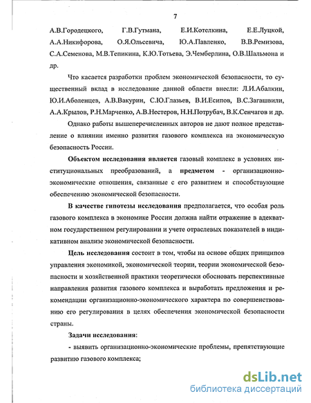 Однако работы вышеперечисленных авторов не дают полное представление о влиянии именно развития газового комплекса на экономическую безопасность России.