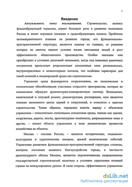 Актуальность темы исследования. Строительство, являясь фондообразующей отраслью, играет большую роль в развитии экономики России и имеет огромное значение в градообразующем аспекте. Проблемы целенаправленного влияния на развитие города, его функционально-пространственной структуры, являются одними из главных, от решения которых во многом зависят условия жизни миллионов людей и рост эффективности общественного производства. Особое значение они приобретают в условиях рыночной экономики, когда под влиянием рыночных механизмов происходит реорганизация налаженных схем региональных, внутриотраслевых и межсекторных потоков, что особенно характерно для такой сложной и неоднородной среды как строительство.
